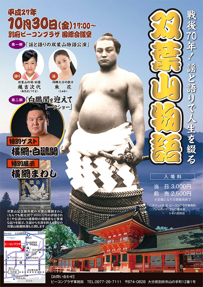 10月30日(金)『双葉山物語〜戦後70年!謡と語りで人生を綴る〜』が、朱花のふるさとである大分県別府市の別府ビーコンプラザ 国際会議場で行われ、朱花が出演いたしました。