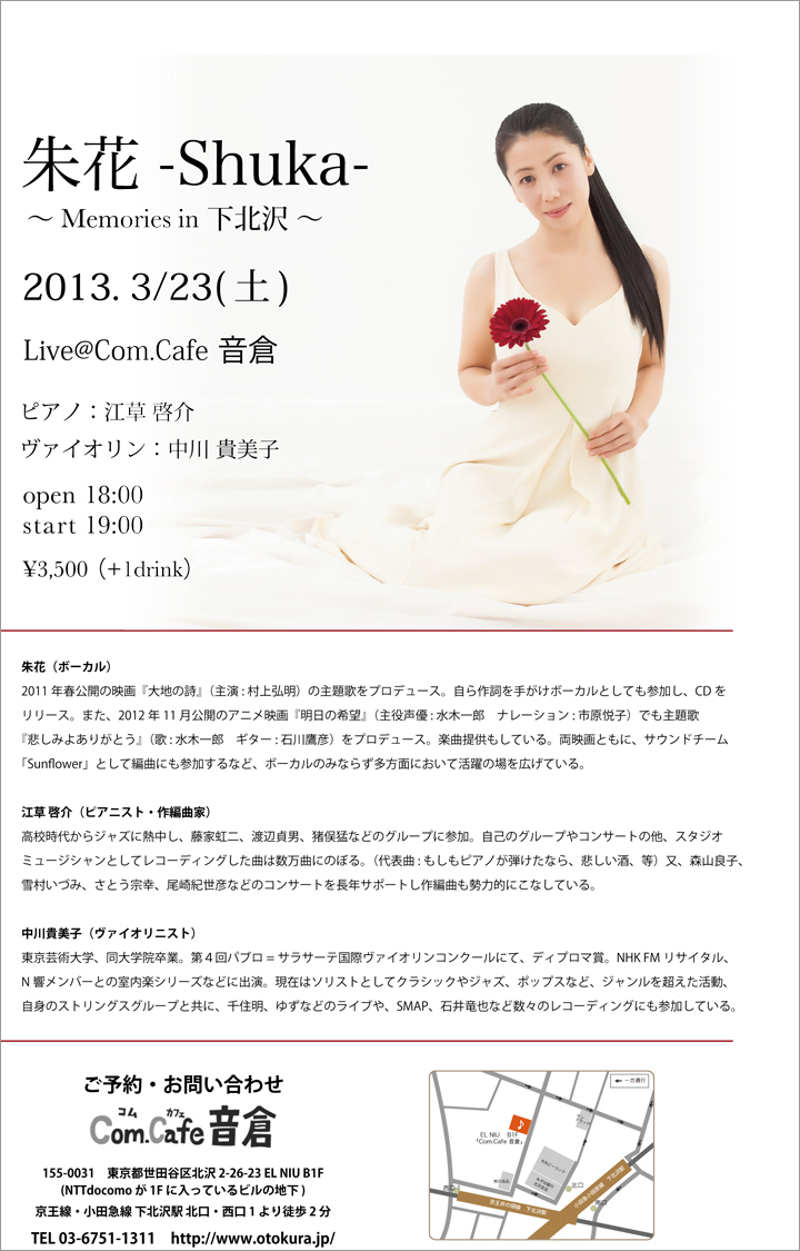朱花の生まれ故郷である大分県別府市もコンサート地に含まれており、九州の皆様にお会い出来る事を今からとても楽しみにしています。
